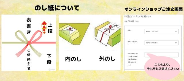 *夏季の間(6月下旬~10月月初)、「伝承館ますのすし」・「竹ずし」ともにお届け日24時まで